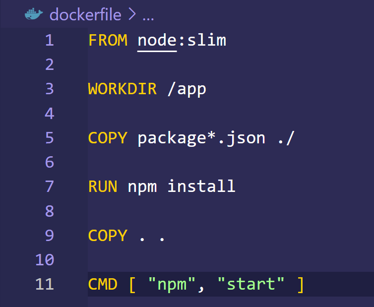 Note that we use the slim node package, which is a more slimmed-down, optimized version of node ideal for production environments which takes up less storage too.